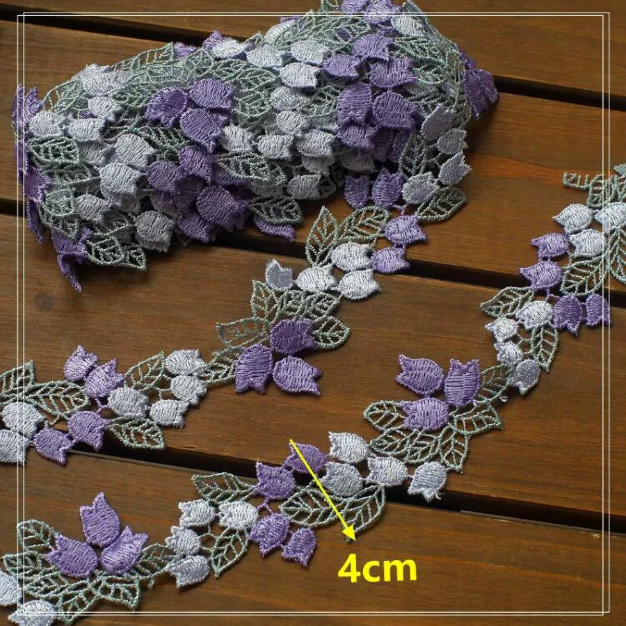 1 Yard Flowers Embroidery Water Soluble Lace Fabric Trim Ribbon Applique Dress Headwear Accessories DIY Sewing Repair 4CM Wide